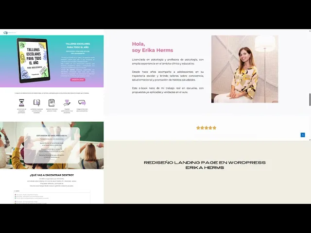 Erika necesitaba dos landing pages distintas: una para su ebook dirigido a docentes y profesionales que trabajan con adolescentes, y otra para su curso sobre autoestima. Rediseñé ambas con estructuras narrativas diferenciadas según el producto, mejorando el valor percibido, la coherencia visual y la persuasión para facilitar la compra. El trabajo incluyó diseño integral, redacción de contenido, optimización SEO y adaptación a múltiples dispositivos. El resultado: dos páginas claras, atractivas y efectivas para comunicar y vender sus propuestas.